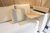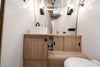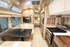 Equipped with a range of premium features, including Smart Control Technology, a custom-made sofa, a signature powered awning, and the exclusive Pottery Barn Accessory Kit, the Se 28RBQ ensures convenience and elegance wherever you go. The airplane table integrated into the sofa, solid oak wood dinette, and outdoor hanging table provide functional spaces for dining and relaxation.